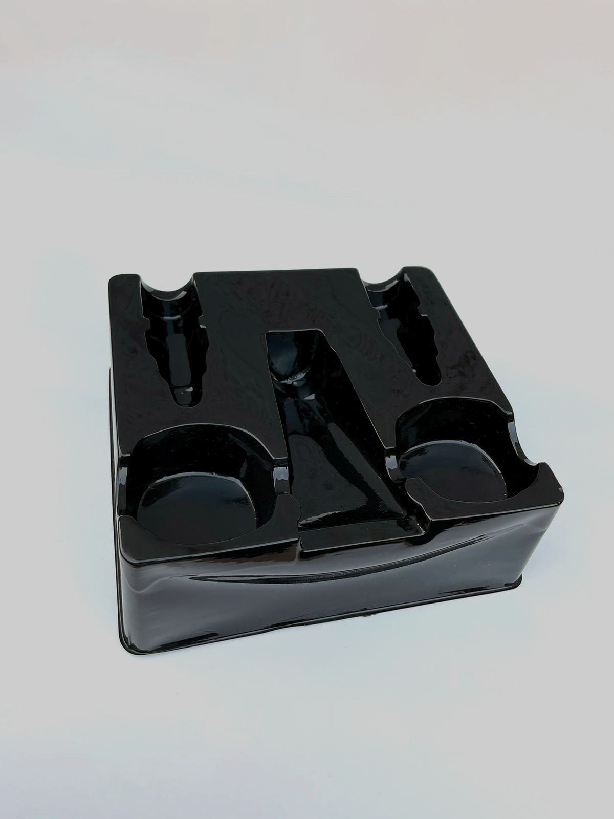 Embalagem blister em PET PRETO foi desenvolvida para o produto em sí ter um realce com a tonalidade preta de fundo e destacando a identidade visual e os benefícios do produto do cliente.